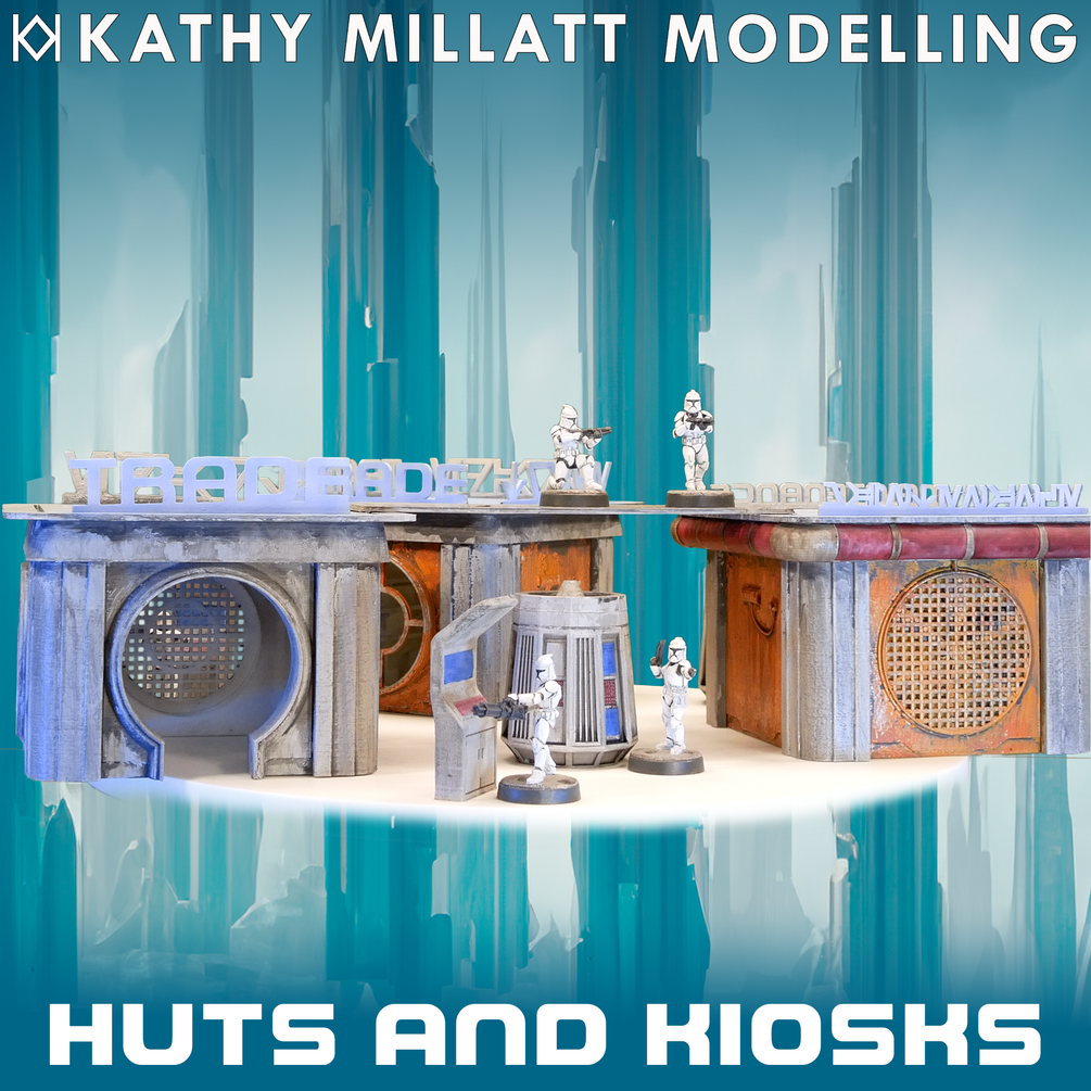 Spaceships need constant maintenance, somewhere to buy spare parts and even the crew need medical assistance. The servicing facility includes a checkpoint post to keep unwanted rabble out, a medical centre, a ship services building plus trade and maintenance huts. You can string them together with walkways (compatible with Shatterpoint) plus there's a range of interesting scatter including barriers, kiosks, desks, medical equipment signs and more.